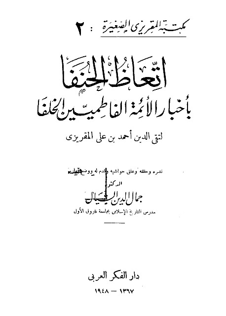 اتعاظ الحنفاء بأخبار الأئمة الفاطميين الخلفاء |