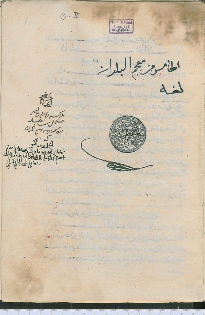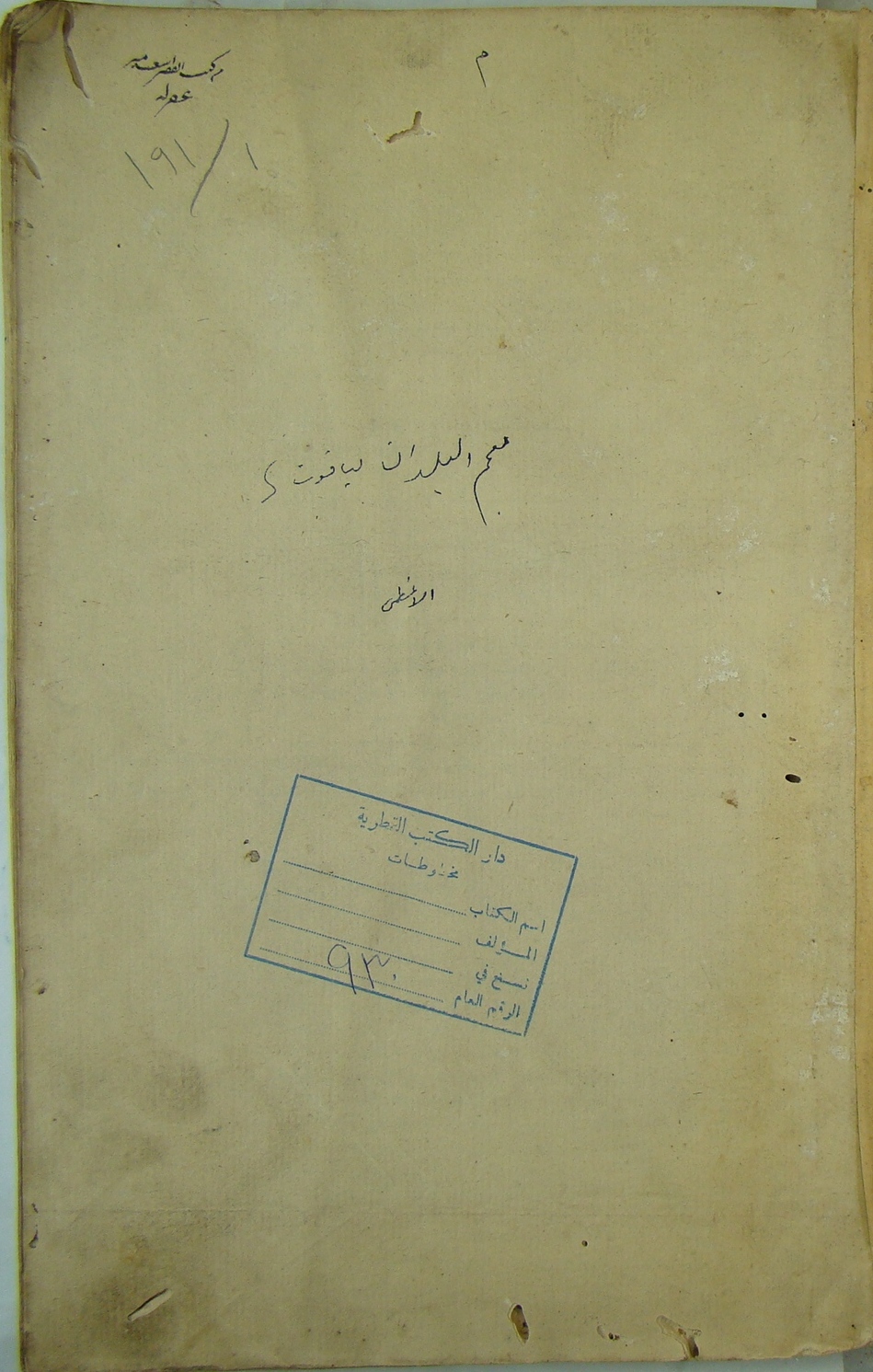 إلى ههنا انتهى بنا ما أردنا جمعه وتيسر لنا وضعه من كتاب معجم البلدان بعد أن لم نأل جهدا في التصحيح والضبط والإتقان والخط ..ولكنني انقدت فيه لنهمتي وجررت رسني له بقدر همتي وسألت الله أن لا يحرمنا ثواب التعب فيه ولا يكلنا إلى أنفسنا فيما نعمله وننويه بمحمد وآله وأصحابه الكرام البررة. وكان فراغي من هذه المسودة في العشرين من صفر سنة 621 بثغر حلب، وأنا أسأل الله الهداية إلى مراضيه والتوفيق لمحابه بمنه وكرمه. |